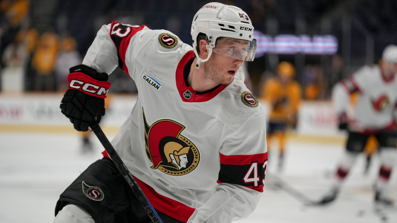 O atacante esquerdo marcou três gols e 18 pontos em 69 jogos nesta temporada e lidera todos os defensores do Ottawa com 126 rebatidas.