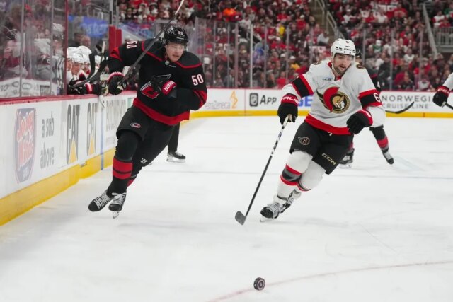 O ritmo foi muito acelerado a partir do Jogo 1, com os Hurricanes mantendo uma vantagem de 28-16 nos arremessos em dois períodos. Os Senators venceram Carolina por 8 a 5 no terceiro sem gols, que foi disputado sem pênalti marcado.