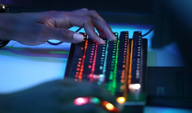 Austin Manengu, membro da YMCA, trabalha no teclado enquanto joga Fortnite durante a inauguração do novo laboratório de jogos no Maplewood Household YMCA em Rochester, quinta-feira, 20 de junho de 2024. YMCA da Grande Rochester em parceria com Metro Sports activities & Leisure Group abrirá dois laboratórios de jogos para jovens e adolescentes este ano.