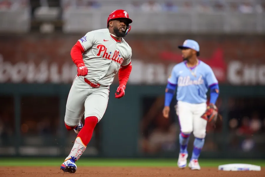 Filadélfia marcou outra corrida na quarta entrada, quando Bryson Stott acertou um triplo na parede de tijolos do campo direito para marcar Brandon Marsh.