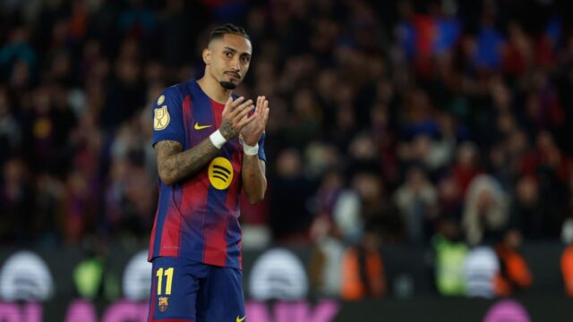 Início Esporte Raphinha, do Barcelona, ​​pede desculpas por gesto para com torcedores do Atlético