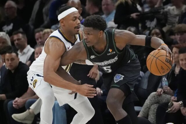 Os Timberwolves, sexto colocado, têm uma vantagem de 3 a 1 sobre o terceiro Nuggets. A série melhor de sete recomeça na noite de segunda-feira em Denver.