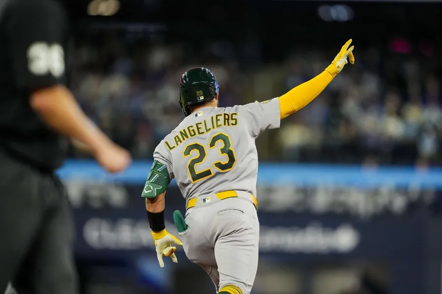 Langeliers liderou os campeonatos em homers que entraram no jogo de quinta-feira. Ele quebrou o recorde de sua carreira com 31 pontos na temporada passada e saiu fumando na excursão de seis jogos do clube na abertura da temporada.