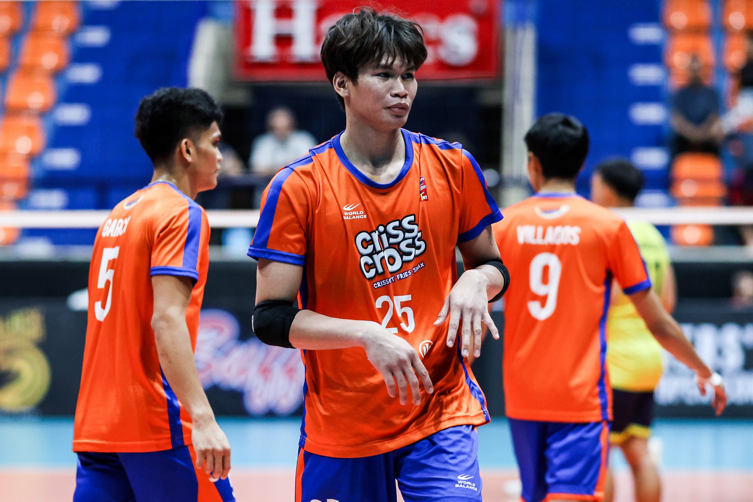 Ele fez 12 pontos e sete tentativas na conquista do título de Criss Cross Vitória por 28-26, 25-17, 26-28, 25-23 sobre Savouge no jogo 3 das finais no domingo no Filoil Middle na cidade de San Juan.