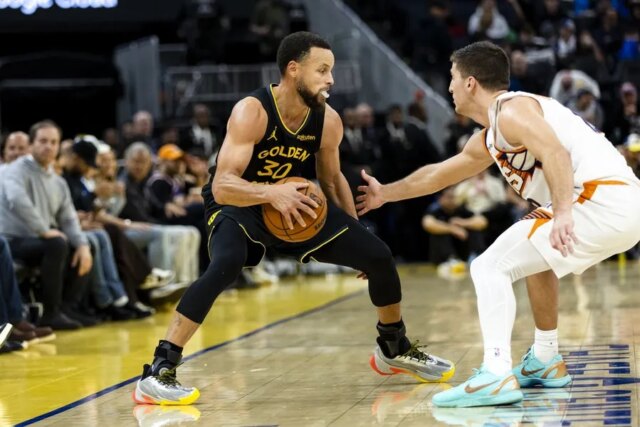 Curry teve média de 23,7 pontos, 7,7 rebotes e 5,3 assistências contra o Suns nesta temporada.