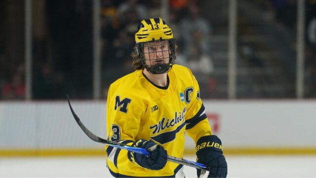 Hughes, pure de Hamilton, Ontário, e capitão do Michigan Wolverines, teve um ano produtivo no último ano, marcando 21 gols e 35 assistências em 39 jogos enquanto liderava seu time às semifinais do campeonato masculino de hóquei NCAA D1.