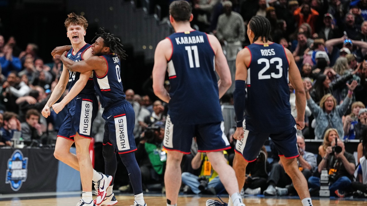 Tarris Reed Jr. liderou UConn com 26 pontos e por um tempo teve pouca ajuda ofensiva. Os Huskies reduziram gradualmente o déficit no segundo tempo, porém, e um 3 de Karaban colocou-os em um gol faltando menos de um minuto para o fim.