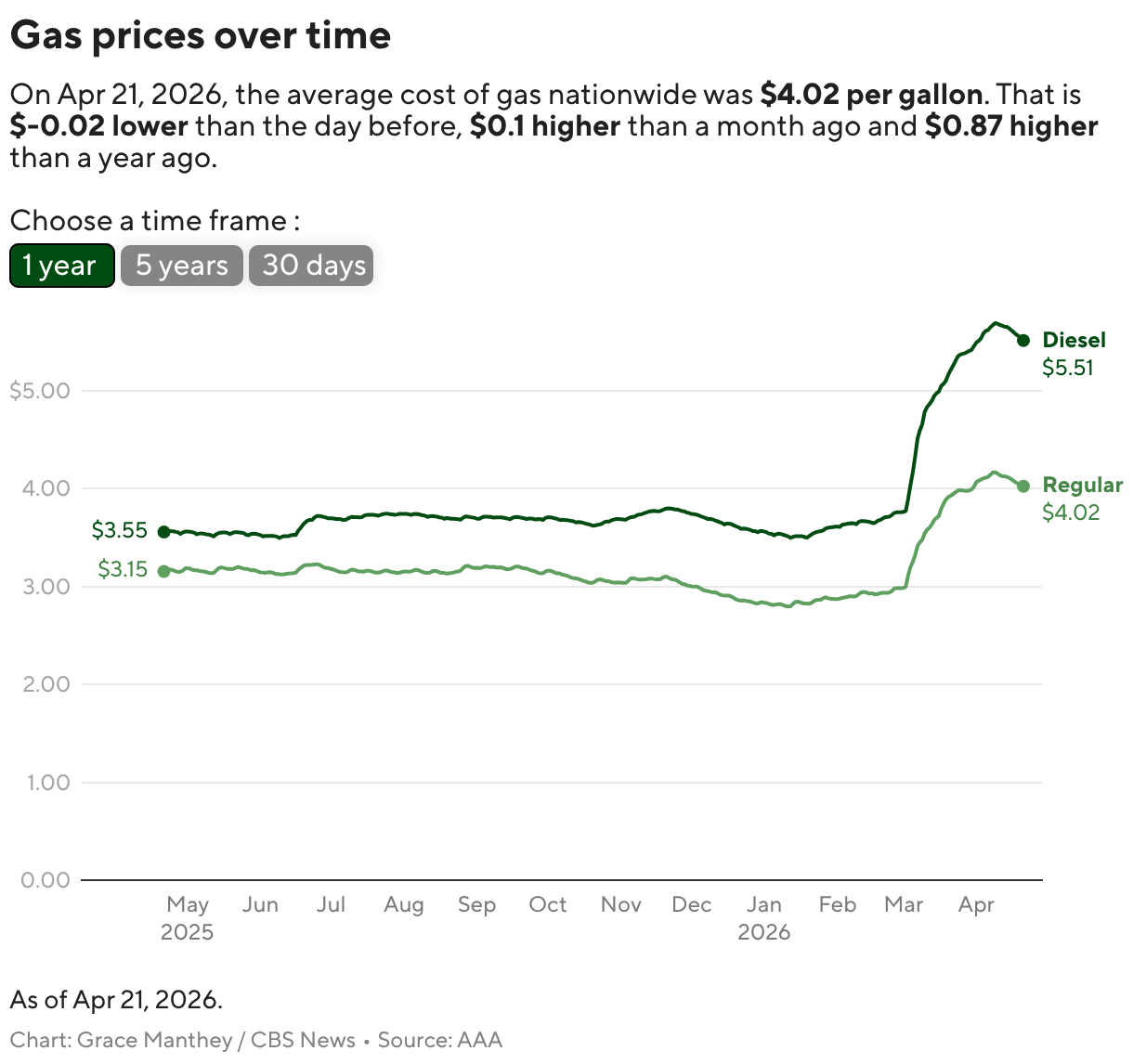 Na terça-feira, o preço médio do gás nos EUA period de US$ 4,02, de acordo com para AAA, um aumento de mais de um dólar desde o início do conflito.