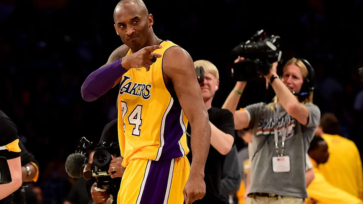 Kobe Bryant, do Los Angeles Lakers, reage antes de enfrentar o Utah Jazz no Staples Middle, em 13 de abril de 2016, em Los Angeles, Califórnia. (Harry How/Getty Photographs)