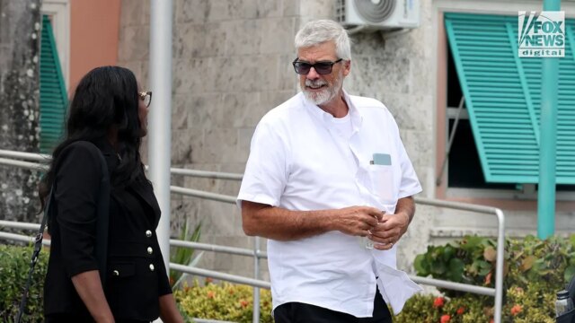 Brian Hooker passa pela Delegacia Central de Polícia para pegar sua aliança de casamento e assistir com seu advogado, Terrel A. Butler em Freeport, Bahamas, terça-feira, 14 de abril de 2026. Seu anel, que ele usa no dedo mindinho, não estava com ele quando foi libertado da prisão na noite passada, após ser interrogado pela polícia sobre o desaparecimento de sua esposa, Lynette Hooker. (Matthew Symons para Fox Information Digital)