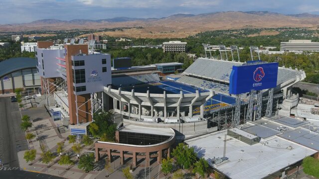 Uma vista aérea do Albertsons Stadium no campus da Boise State College em Boise, Idaho, em 15 de setembro de 2024. (Kirby Lee/Imagens Getty)