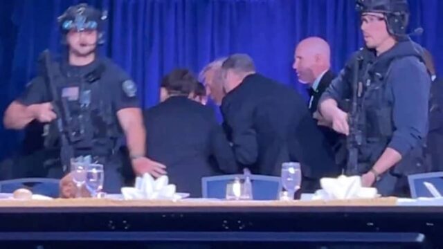 Trump, que estava sentado no palco na frente do salão de baile ao lado da primeira-dama Melania, foi rapidamente cercado por agentes do Serviço Secreto dos EUA, enquanto centenas de participantes se abaixavam sob suas mesas para se protegerem.