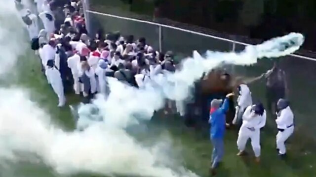 Mas as autoridades disseram que centenas de pessoas emblem tentaram romper as barreiras e cercas da fazenda, enquanto outros bloquearam estradas próximas para retardar a aplicação da lei e as equipes de emergência.