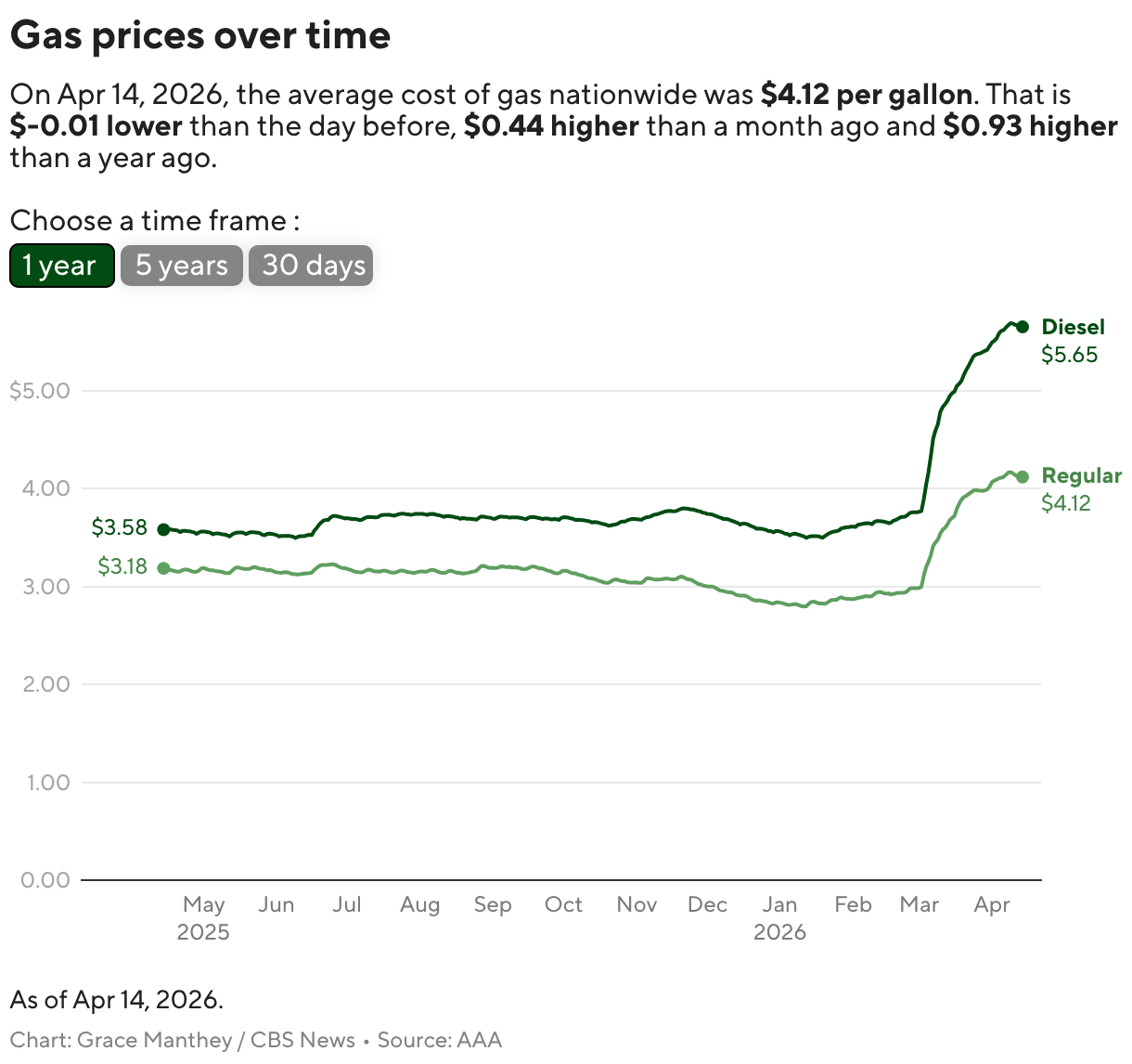 O preço médio de um galão de gasolina nos EUA é de US$ 4,12, acima dos US$ 2,98 pouco antes da guerra do Irã, de acordo com AAA.