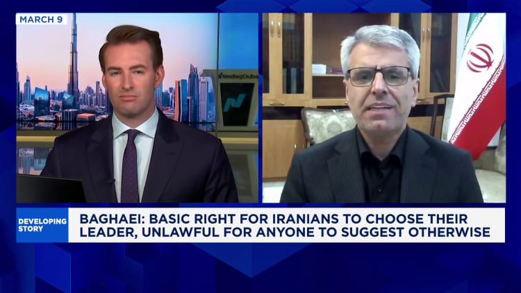 O porta-voz do Ministério das Relações Exteriores do país, Esmail Baghaei, disse à CNBC na segunda-feira que o país se uniria em torno de Mojtaba Khomeini quando questionado sobre cismas na liderança do país.