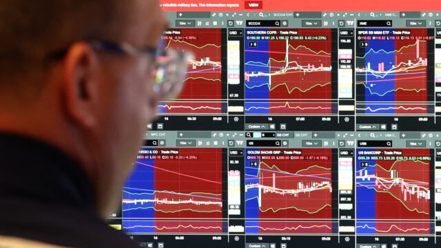 Um dealer trabalha no pregão da Bolsa de Valores de Nova York (NYSE) no sino de abertura em Nova York em 16 de abril de 2026.