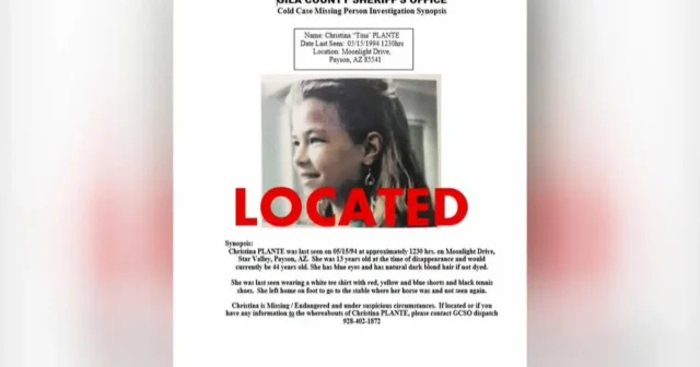 A polícia do Arizona localizou uma mulher que desapareceu quando period adolescente, há mais de três décadas. O gabinete do xerife do condado de Gila, Arizona, disse que Christina Marie Plante fugiu com um membro da família não revelado. Tom Hanson relata como as autoridades a encontraram anos depois.