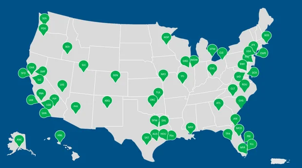 O Touchless ID está disponível em 65 aeroportos localizados nos Estados Unidos. A TSA compartilhou um mapa com suas localizações em seu website.