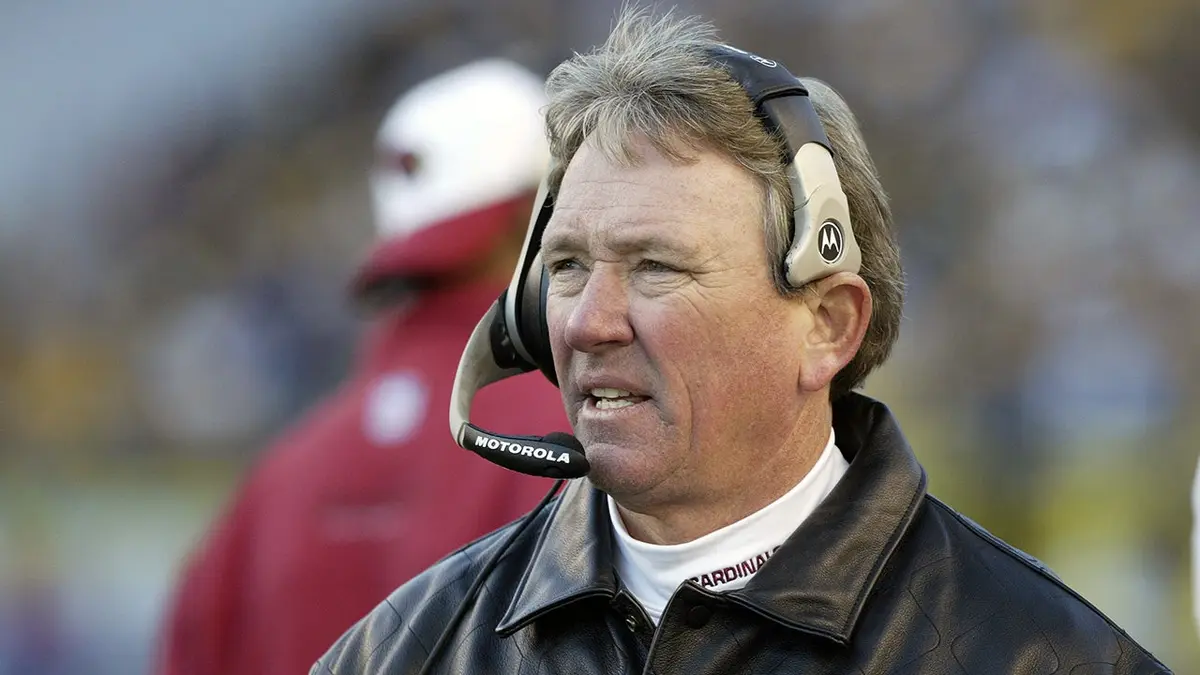 O técnico Dave McGinnis, do Arizona Cardinals, assiste da linha lateral durante um jogo contra o Pittsburgh Steelers no Heinz Discipline em Pittsburgh, Pensilvânia, em 9 de novembro de 2003. Os Steelers derrotaram os Cardinals por 28-15. (George Gojkovich/Getty Pictures)
