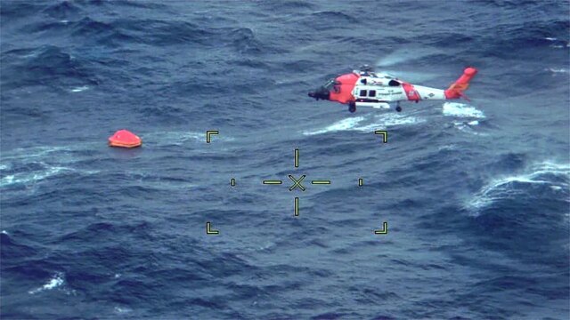 A tripulação da Guarda Costeira então implantou seu nadador de resgate e içou com segurança os dois agentes restantes e o velejador com segurança a bordo da aeronave.