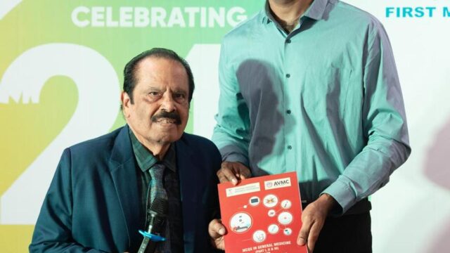 Vários livros didáticos de medicina e livros relacionados à saúde, editados por TV Devarajan, especialista em medicina interna do Hospital Apollo FirstMed e professor emérito de medicina da Fundação de Pesquisa da Missão Vinayaka, foram lançados em um evento no sábado (25 de abril de 2026).