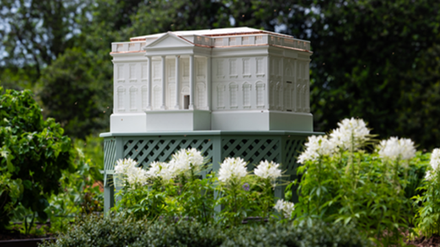 A nova colméia digna de rainha, feita à mão por um artesão native da Virgínia à imagem da Casa Branca, adicionará duas novas colônias de abelhas às duas existentes na propriedade.