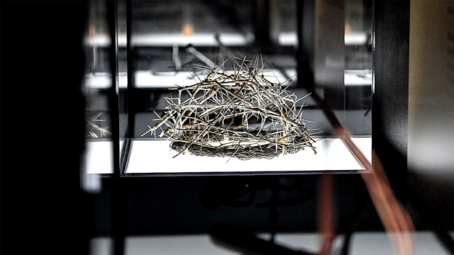 Uma réplica da coroa que se acredita ter sido usada por Jesus Cristo em “O Sudário de Turim: Uma Experiência Imersiva” na Catedral de Cristo em Backyard Grove, CA, na terça-feira, 18 de novembro de 2025. (Jeff Gritchen/MediaNews Group/Orange County Register)