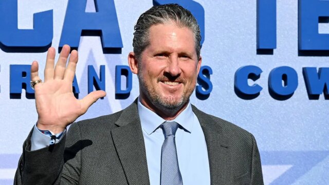 Steve Beuerlein acena em um evento da Netflix para “America’s Crew: The Gambler and His Cowboys” no Egyptian Theatre em Los Angeles, Califórnia, em 11 de agosto de 2025. (Gilbert Flores/Variedade by way of Getty Photographs)