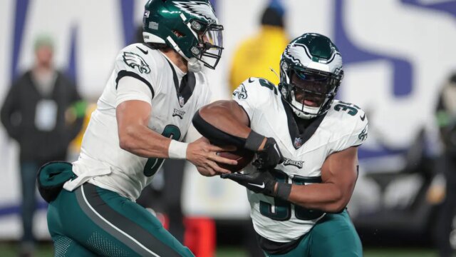 Boston Scott, do Philadelphia Eagles, sai de campo após um jogo contra o Houston Texans no NRG Stadium, em 3 de novembro de 2022, em Houston, Texas. (Cooper Neill/Imagens Getty)