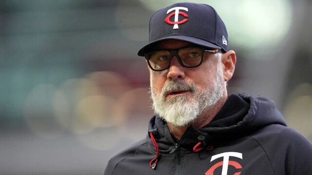 O técnico do Minnesota Twins, Derek Shelton, caminha até o banco de reservas durante o primeiro turno de um jogo de beisebol contra o Boston Pink Sox em Minneapolis, em 13 de abril de 2026. (Abbie Parr/AP)