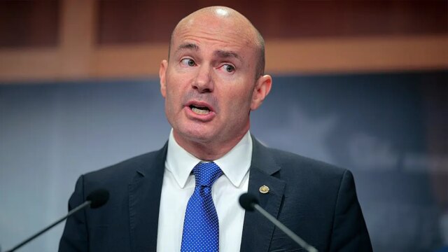 O senador Mike Lee, R-Utah, falou durante uma entrevista coletiva sobre a Lei SAVE America no Capitólio dos EUA em 19 de março de 2026, em Washington, DC (Chip Somodevilla/Getty Photographs)