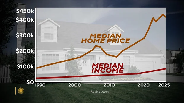 Realtor.com estima que haja uma escassez de quatro milhões de residências. E embora os preços das casas tenham subido 300% desde 1990, os rendimentos não acompanharam o aumento, aumentando apenas cerca de metade desse valor.