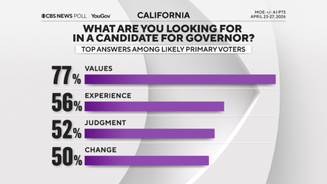 Esta pesquisa da CBS Information/YouGov foi realizada com uma amostra representativa de 1.479 eleitores registrados na Califórnia entrevistados entre 23 e 27 de abril de 2026. A amostra foi ponderada de acordo com sexo, idade, raça, educação e região geográfica com base no arquivo eleitoral e nos dados do Censo dos EUA, bem como na votação presidencial de 2024. A margem de erro é de ± 4,2 pontos para eleitores registados e de ± 4,1 pontos para prováveis eleitores primários.