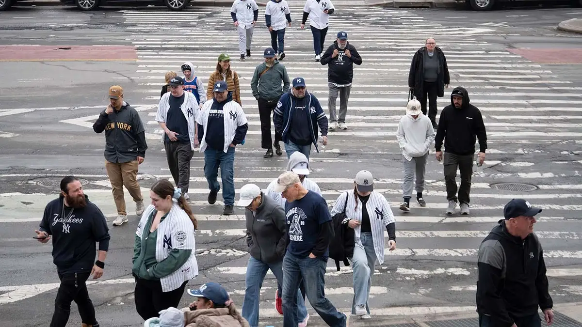 Os torcedores se reúnem do lado de fora do Yankee Stadium antes da estreia em casa entre o New York Yankees e o Miami Marlins na sexta-feira, 3 de abril de 2026. (Julian Leshay Guadalupe/NorthJersey.com / USA TODAY NETWORK by way of Imagn Photographs)