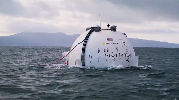 Ele comparou o modelo de teste de Panthalassa, o Ocean-2, a uma barragem hidrelétrica flutuante. “À medida que sobe e desce com as ondas, faz com que a água que está naquele tubo seja forçada para cima. Uma vez na bola, a água é forçada através de uma turbina.
