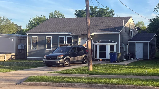A casa onde ocorreu um tiroteio em massa é vista em Shreveport, Louisiana, em 19 de abril de 2026.