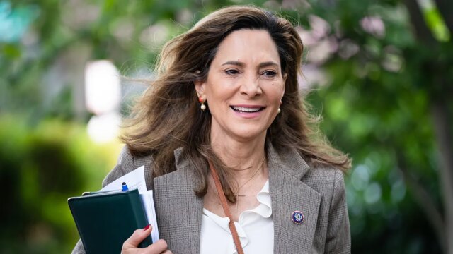 A deputada María Elvira Salazar, R-Flórida, chega para uma reunião da Conferência Republicana da Câmara no Capitol Hill Membership na terça-feira, 10 de junho de 2025. (Tom Williams/CQ-Roll Name, Inc)