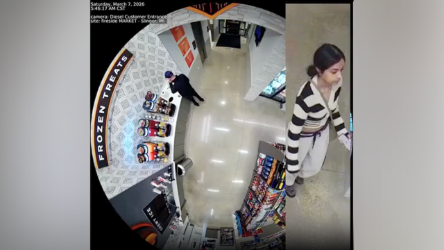 Imagens de vigilância mostram Sundas Naqvi dentro de um posto de gasolina em Slinger, Wisconsin, em 7 de março, contradizendo as alegações de que ela estava sob custódia do ICE. (Gabinete do Xerife do Condado de Dodge)