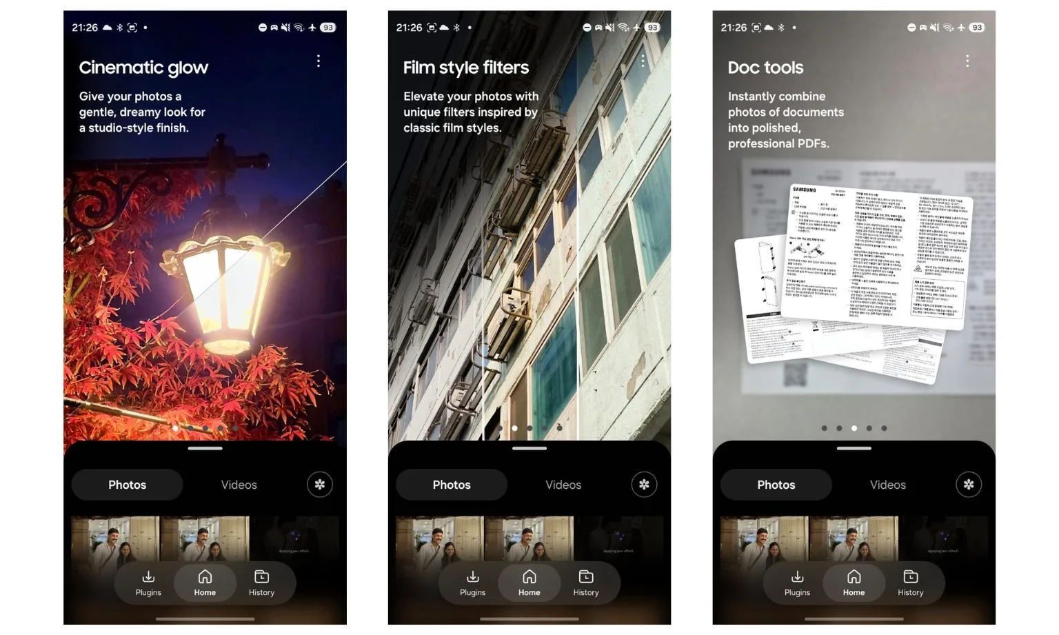 A atualização também traz ferramentas expandidas de edição de fotos, vídeos e documentos. A seção de ferramentas de foto agora inclui itens como correção de desfoque, remoção de reflexo, HDR, nitidez e muito mais, enquanto a seção de edição de rosto permite aos usuários ajustar suavidade, tom, olhos e mandíbula. No lado dos documentos, a Samsung adicionou ferramentas Doc que podem limpar e cortar digitalizações automaticamente, converter e combinar arquivos em JPEGs ou PDFs e até permitir que os usuários adicionem filtros, traduzam, desenhem, cortem e adicionem texto.
