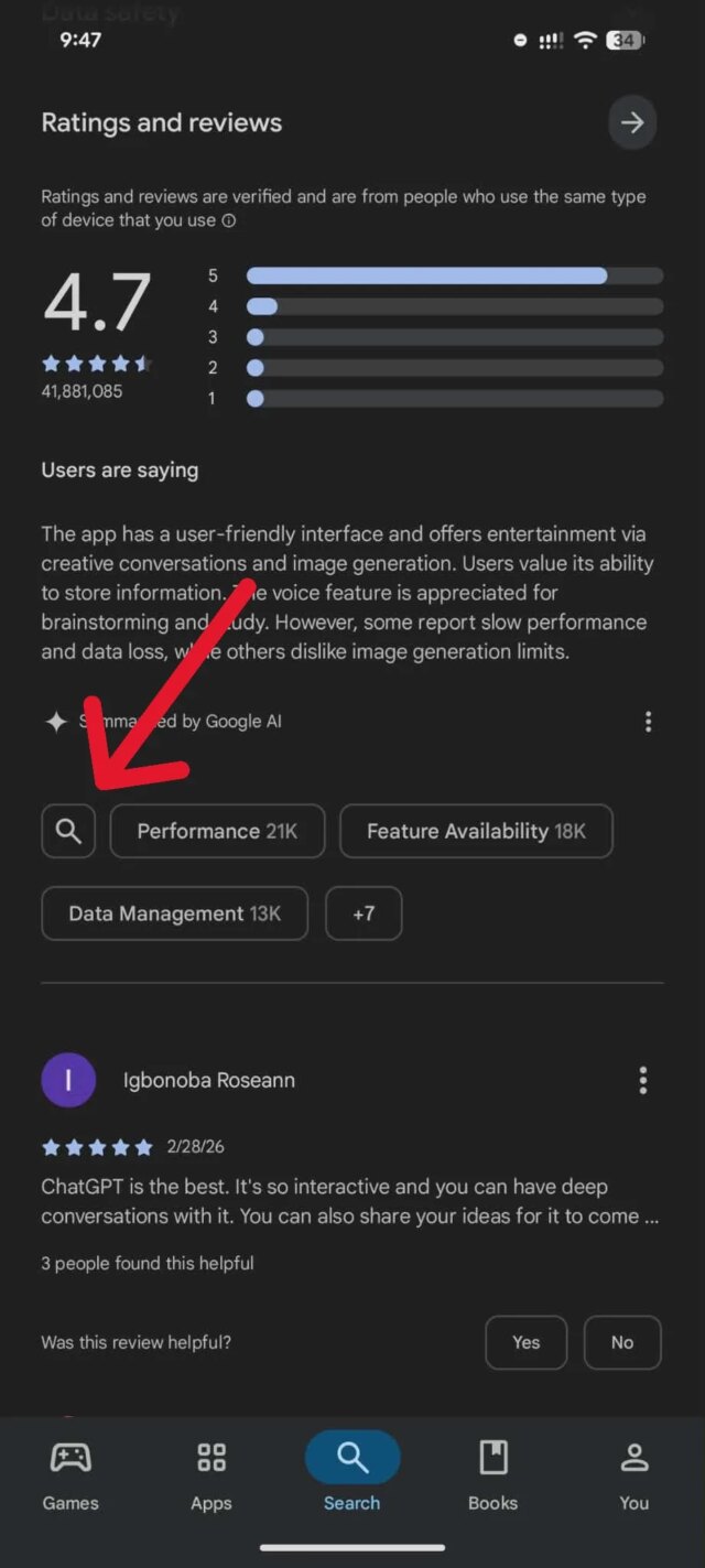 Em vez de vasculhar centenas de comentários, agora é possível digitar termos específicos e obter experiências relevantes instantaneamente. É uma pequena mudança, mas visa uma lacuna actual de confiança na forma como os aplicativos são avaliados antes do obtain.