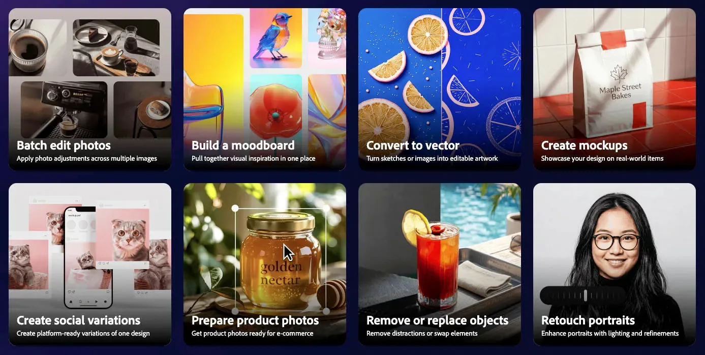 O assistente pode aproveitar mais de 60 ferramentas de nível profissional nos aplicativos da Adobe, incluindo Auto Tone, Generative Fill, Take away Background e Vectorize. Se você é um designer gráfico que precisa de uma maquete de produto, pode fazer add de um logotipo, uma imagem de produto e descrever o resultado desejado.