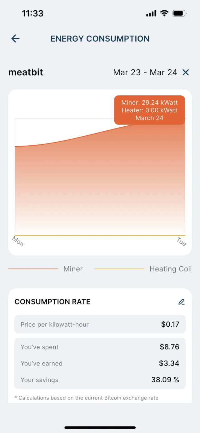 Deixando de lado as peculiaridades iniciais, a facilidade de acesso é admirável para um dispositivo que não é voltado para engenheiros amantes de criptografia. A preços atuais, se eu ligar meu aquecedor/minerador sem parar, isso me renderia um desconto de cerca de US$ 70 em minhas contas de aquecimento uma vez a cada dois meses. Muito authorized, certo?