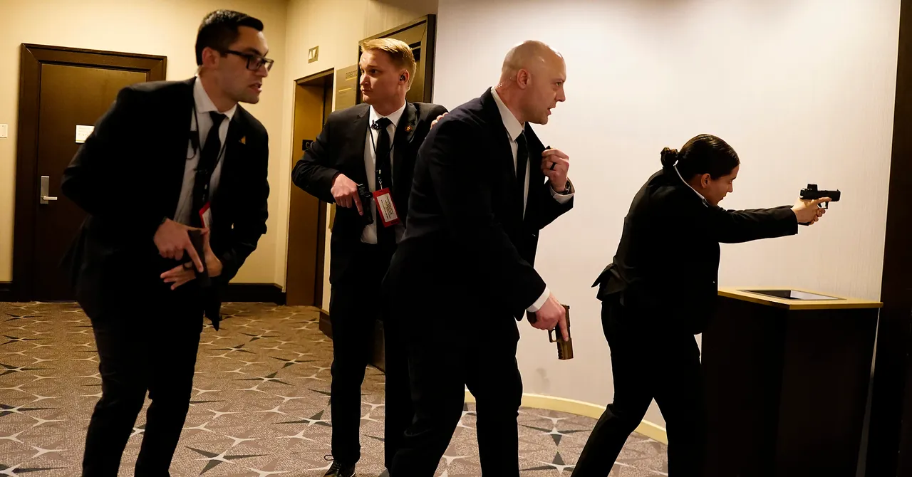 Testemunhas relataram ter ouvido vários tiros fora da sala, e os agentes rapidamente tiraram Trump e o vice-presidente JD Vance do palco. Um agente foi atingido, mas protegido por seu colete à prova de balas. Mais tarde, Trump disse aos repórteres que o agente saiu ileso.