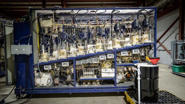 Pesquisadores dentro do laboratório estão trabalhando para replicar como o processo funcionaria em uma grande operação de mineração.