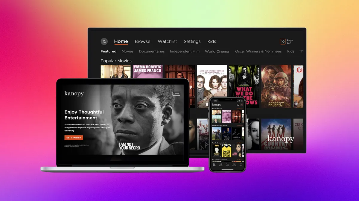 O catálogo do Kanopy dá acesso a mais de 30.000 filmes, programas de TV, audiolivros e muito mais, incluindo:
