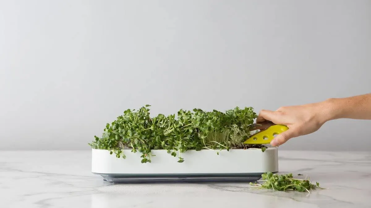 O que chama a atenção neste dispositivo é seu design elegante e compacto. Mesmo sendo maior que um jardim de bancada, o desenho vertical me permite crescer mais sem ocupar muito espaço na minha casa. Ele comporta até 16 frutos, então, embora seja pequeno, você ainda consegue uma boa quantidade de verduras. Ser capaz de cortar manjericão, alface ou flores frescas parecia uma pequena ligação com meu amor pela jardinagem, especialmente durante os meses de inverno, quando os produtos não estão no seu melhor. Por causa desses recursos, decidi conceder-lhe o prêmio CNET Editors’ Alternative.