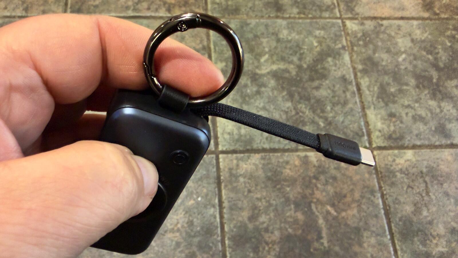No topo do banco de potência há uma alça de náilon com um anel dividido, permitindo prendê-lo à sua bolsa ou chaveiro, o que considero um toque authorized.