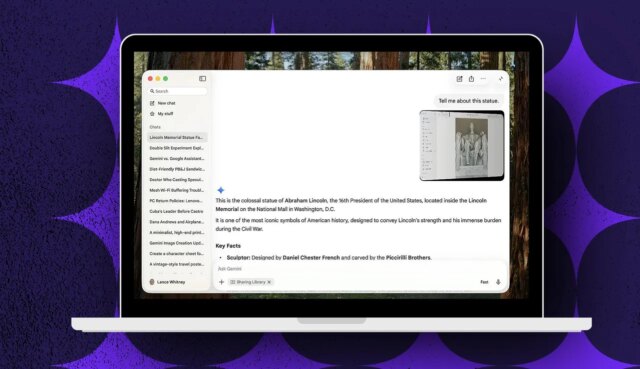 Por minha parte, pedi a Gêmeos que identificasse uma estátua de Abraham Lincoln em uma foto que compartilhei por meio do aplicativo Fotos. A IA identificou-o corretamente como sendo do Lincoln Memorial em Washington, DC, e me contou um pouco da história sobre isso.