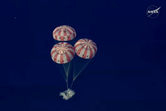 O Integridade A espaçonave Orion parecia uma bola de fogo em chamas quando ela e as quatro almas corajosas dentro dela reentraram na atmosfera da Terra. Após seis minutos excruciantes, o plasma ao redor da cápsula se dissipou e o blecaute de comunicações planejado terminou, restaurando o contato entre o controle da missão e a tripulação.