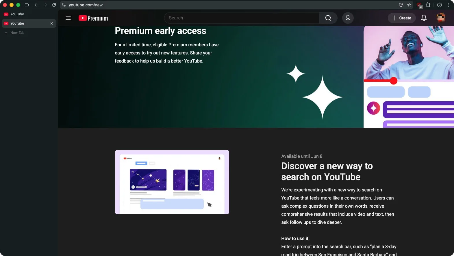 Em vez de digitar palavras-chave em uma barra de pesquisa e esperar o melhor, agora você pode fazer uma pergunta completa ao YouTube e obter uma resposta que mais parece uma conversa. Você pode ativar esse recurso usando o recurso experimental do YouTube.